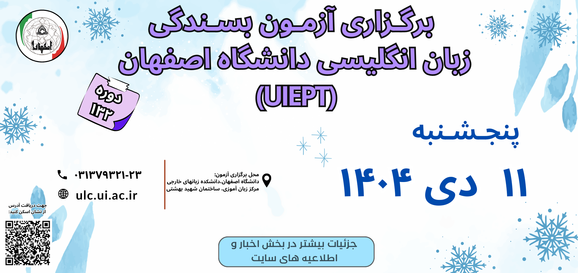 برگزاری آزمون بسندگی زبان انگلیسی ویژه دانشجویان دکتری(UIEPT) 11 دی 1404