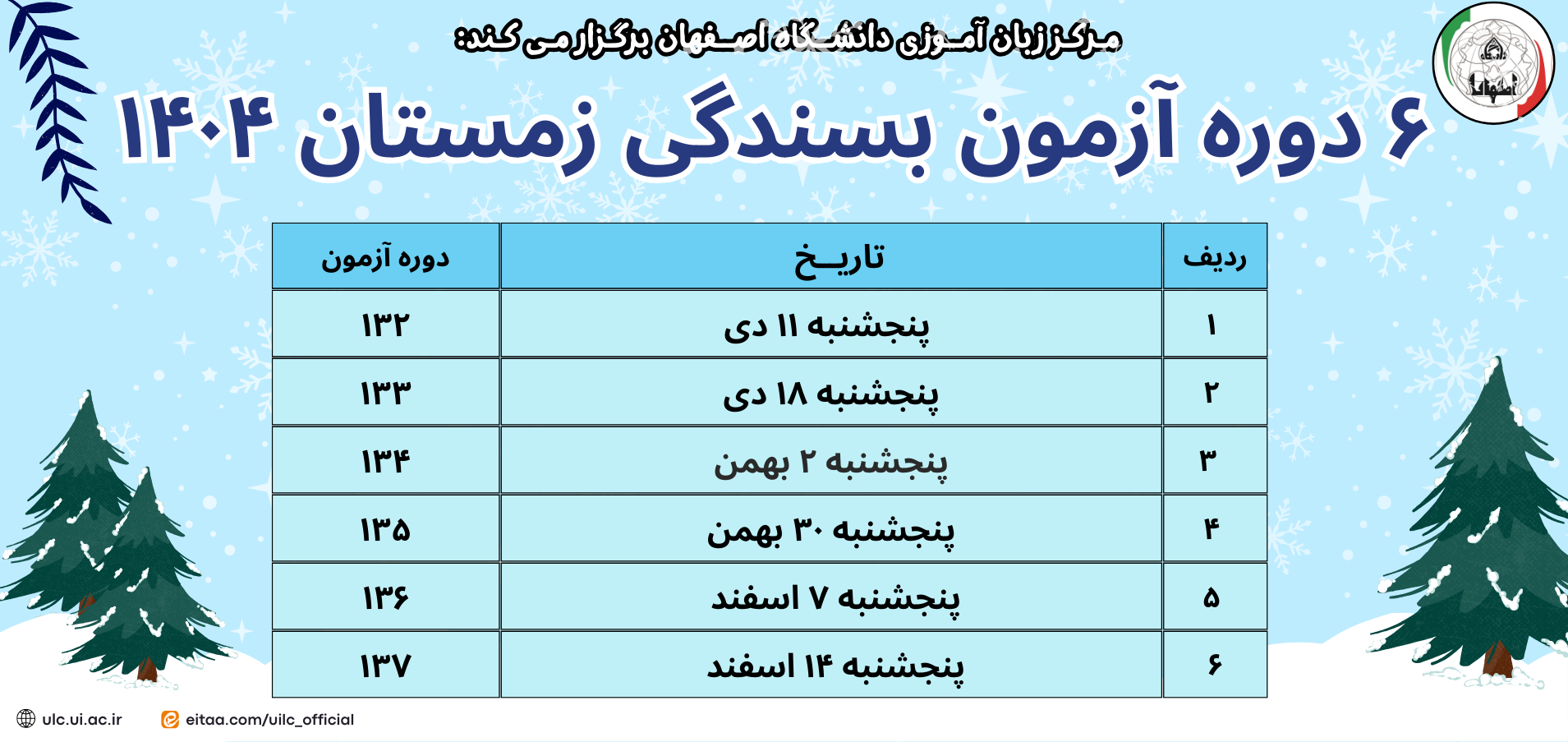 اعلام تاریخ برگزاری آزمون زبان بسندگی دانشجویان دکتری فصل زمستان ۱۴۰۴