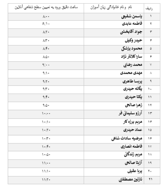 لیست آپدیت شده جهت مصاحبه شفاهی